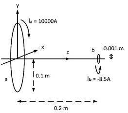 vector potential. The current in loop b is opposite to the current in loop a, and