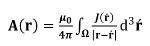 Where A(r) is the vector potential at position r, J(r ́ ) is the current
