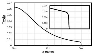 Figure 2 Axial magnetic field Bz of the model in Figure 1. Inset is a detail that