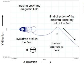Inside the magnet field the electrons move in cyclotron orbits. When